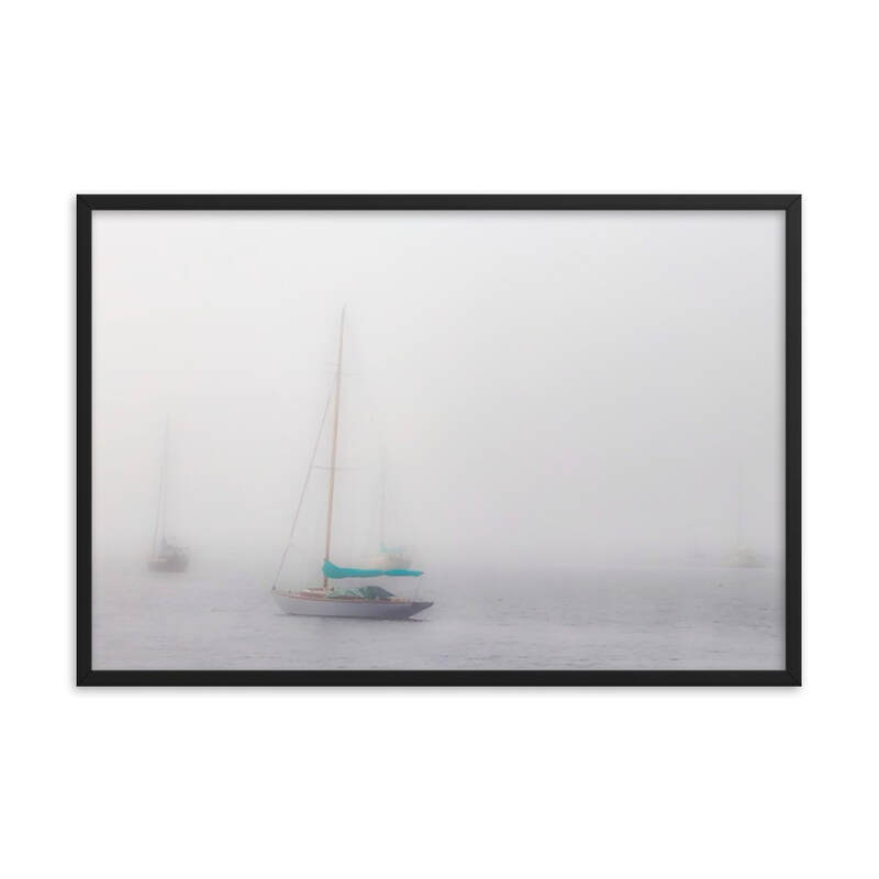 Penobscot Bay-Boats In Fog Matte Framed Poster, Sailboats Water Scenes Photo Framed Posters